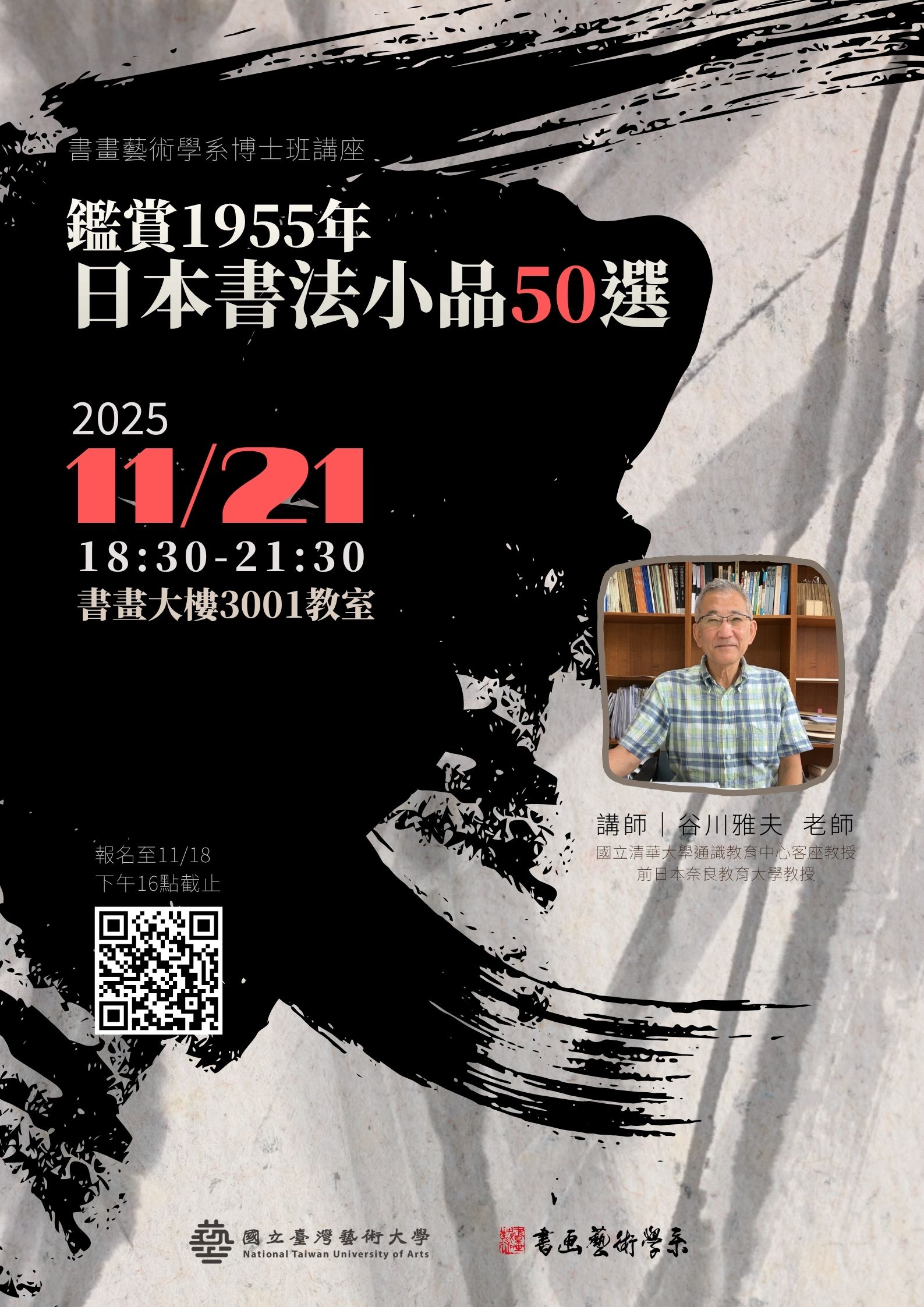 講師:國立清華大學通識教育中心客座教授 谷川雅夫 老師時間:11/21(五)下午18:30~21:30對象:不限地點:3001教室報名時間:即日起至11/18(二)下午16:00截止