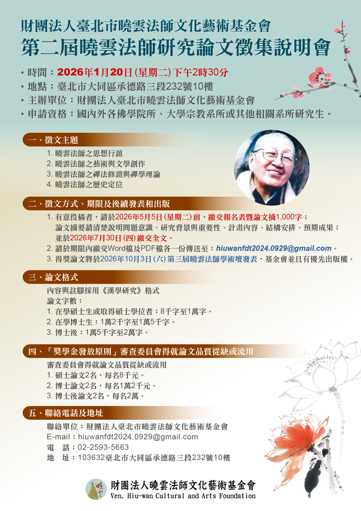 附件檔案:第二屆曉雲法師基金會論文獎學金說明會暨申請人資料表_20260112.pdf