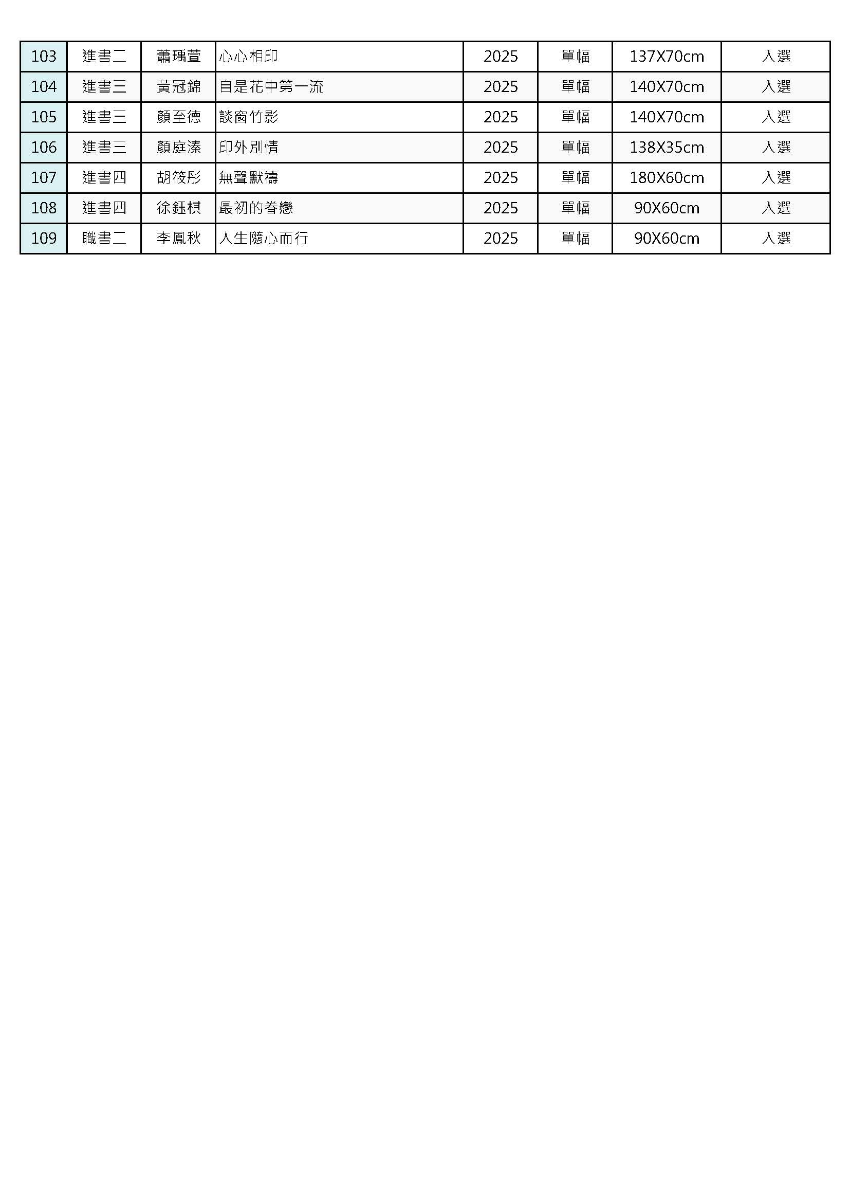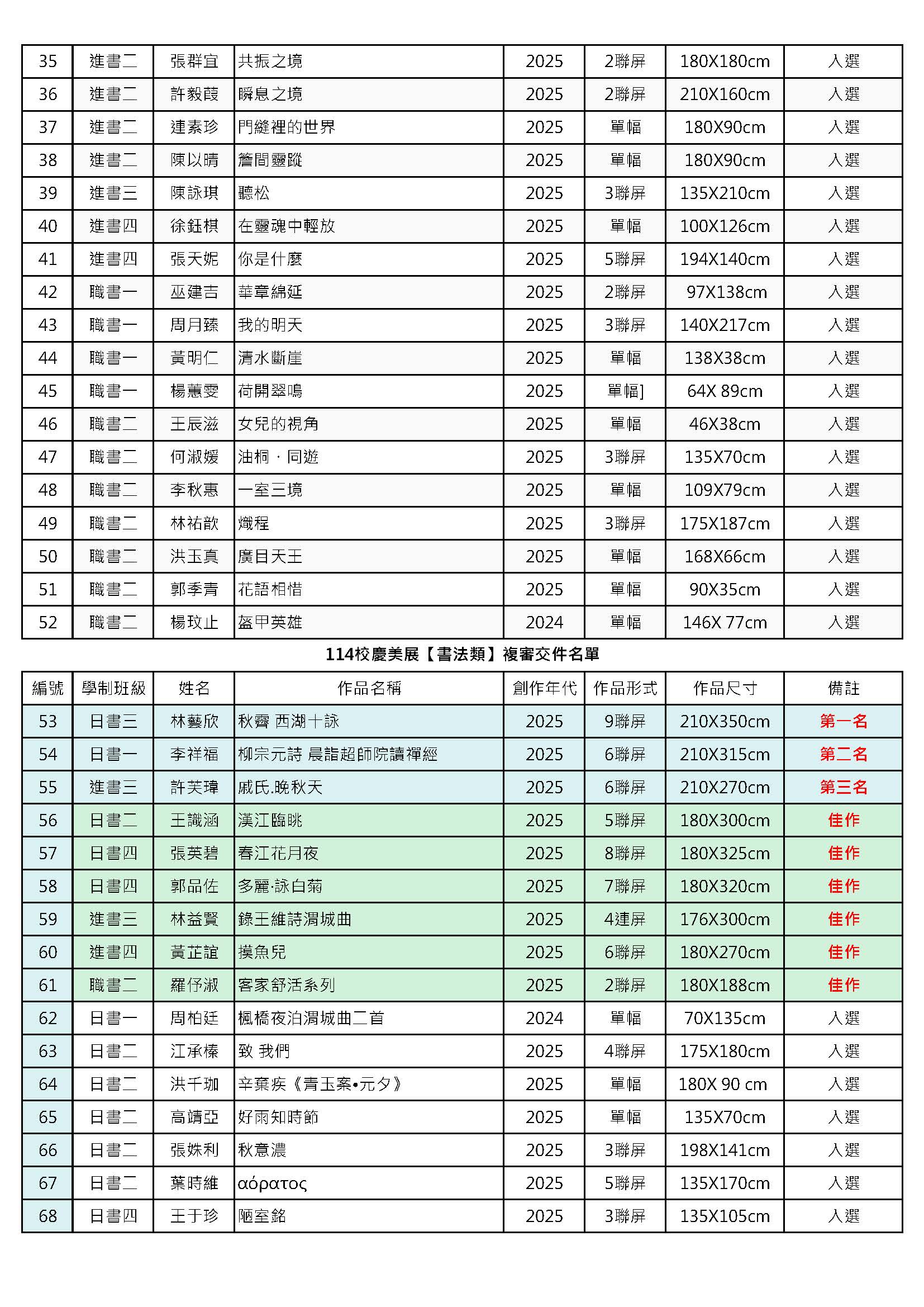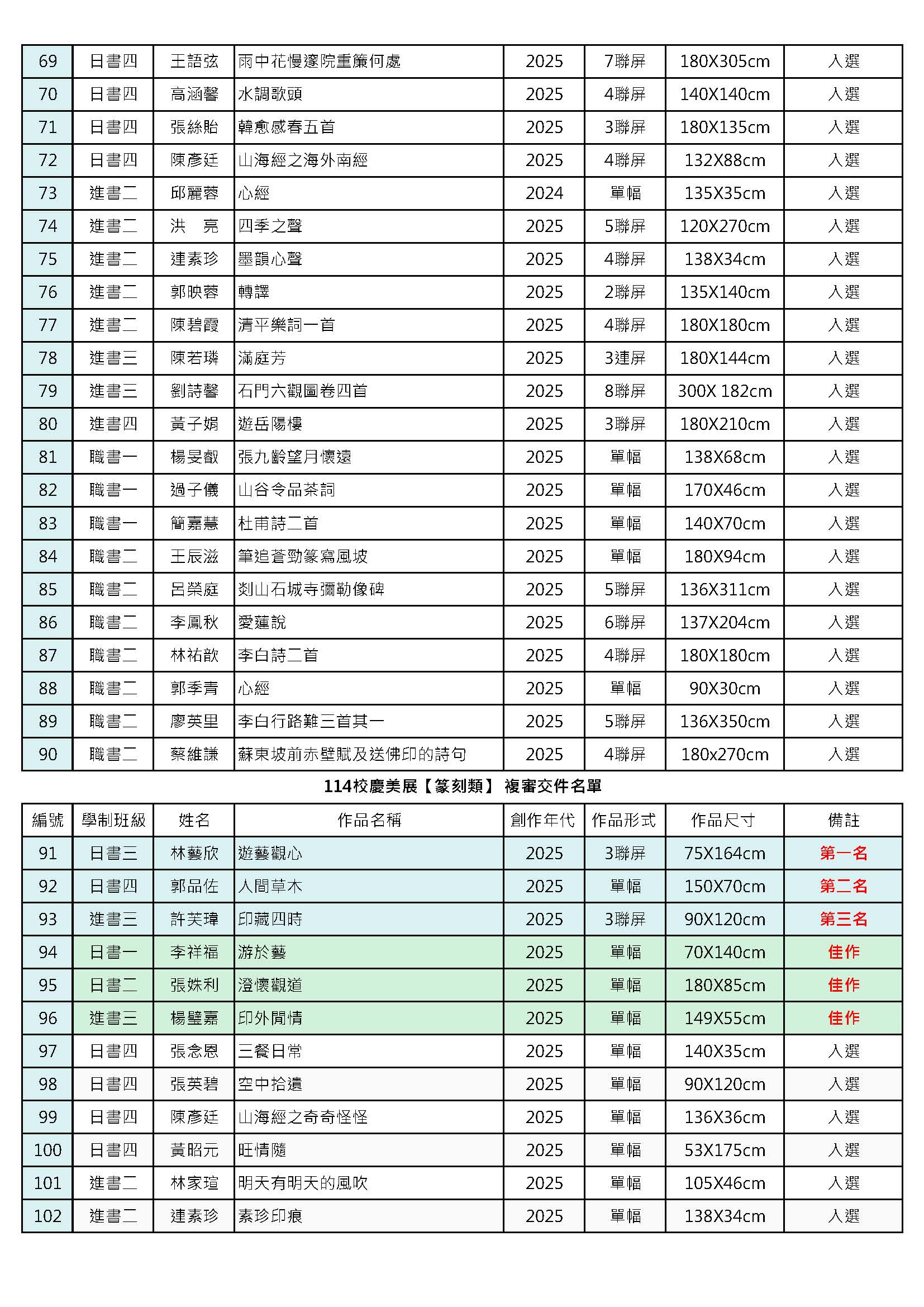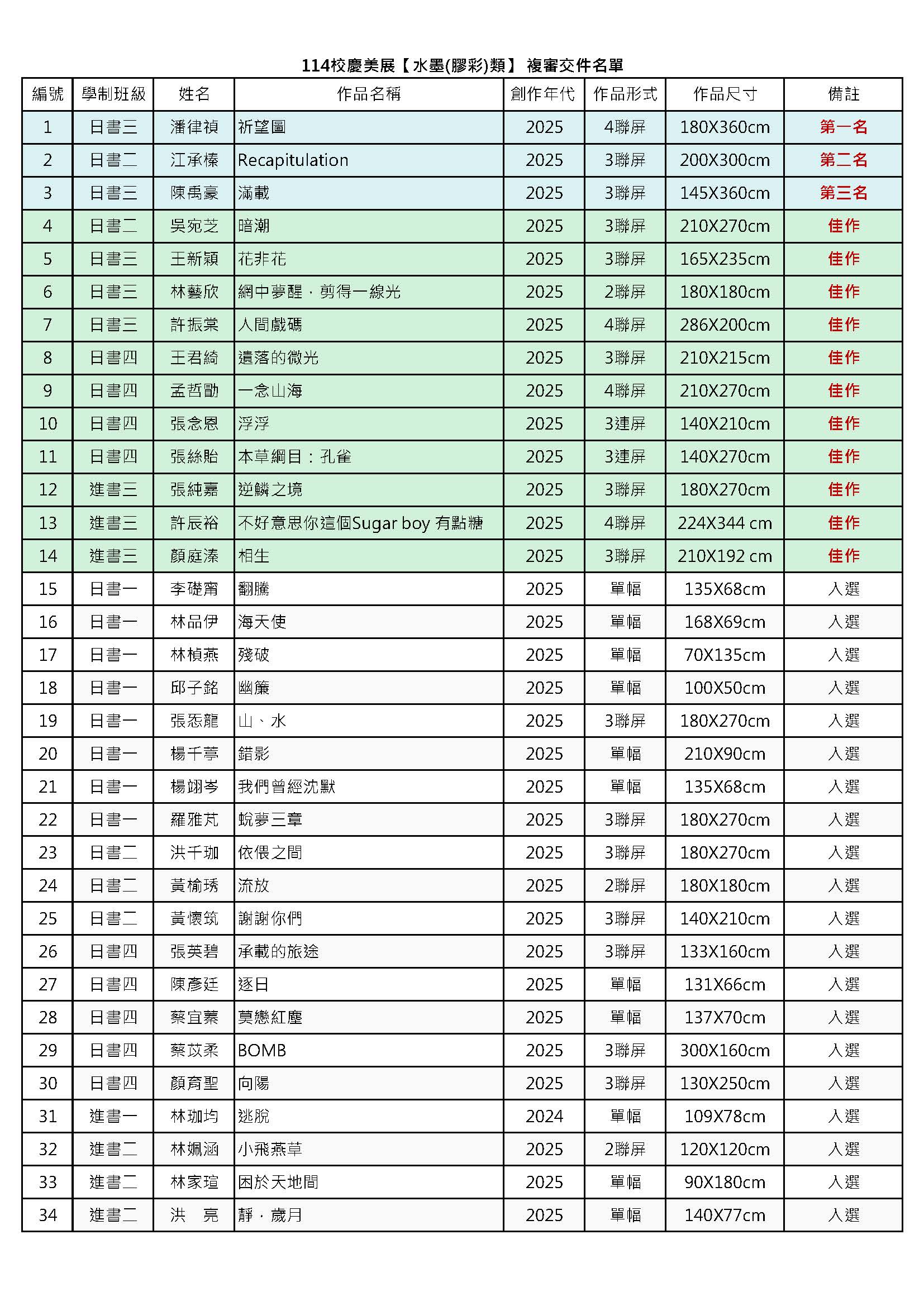 書畫藝術學系114年校慶美展得獎名單